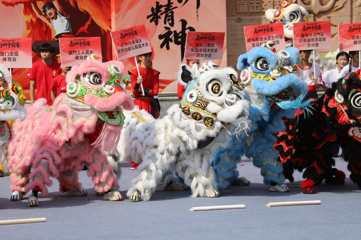 随后,香港、澳门、广州、深圳、珠海、佛山、东莞、中山、肇庆、江门等城市代表队依次登场,他们中既有多次荣获国际奖项的传统强队,也有年轻活力、创新融合的高校狮队。七支高桩南狮、十支传统南狮队伍,共同展现大湾区南狮文化多元蓬勃的生态。