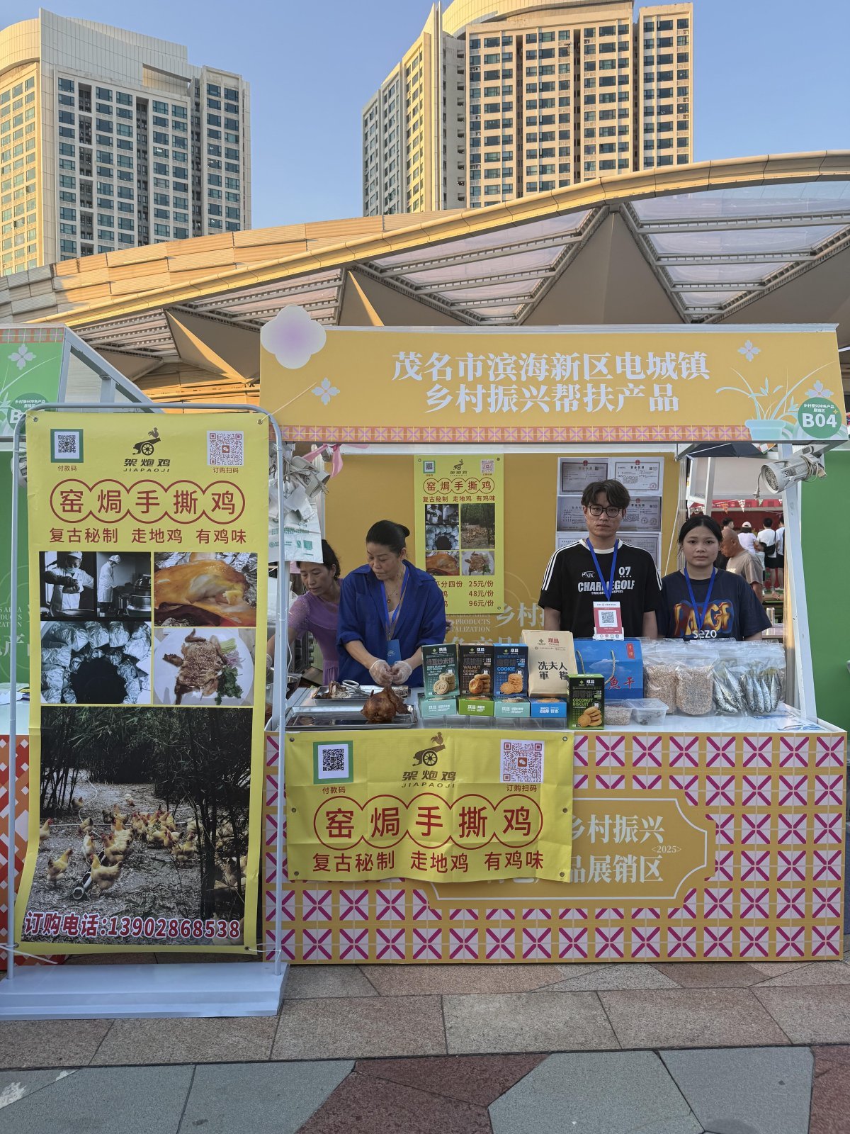 为了能让电城镇的优质农副产品在美食节上大放异彩,三位老师提前两个月就开始与当地企业紧密对接。从精心挑选最具代表性的产品,到细致打包确保运输安全,再到设计富有吸引力的宣传资料,每一个环节都全程参与。不仅如此,老师们还特意招募了学生志愿者加入团队,在现场不仅承担着售卖工作,还积极进行品牌宣传推广,用青春的活力和专业的知识为电城镇的农副产品加分不少。