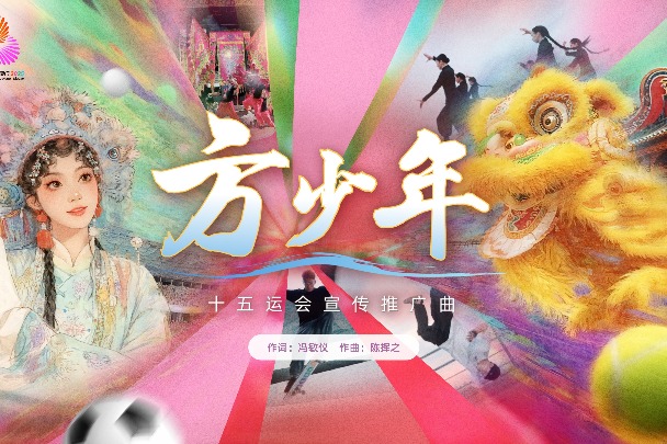 第十五届全国运动会宣传推广曲《方少年》正式发布,该作品由冯敏仪作词、陈挥之作曲,是一首励志歌曲作品。以“文化融合”为核心创作理念,创新性融合女声粤剧戏腔(粤语)与男声流行说唱(普通话),彰显大湾区文化特色与新时代青年精神。