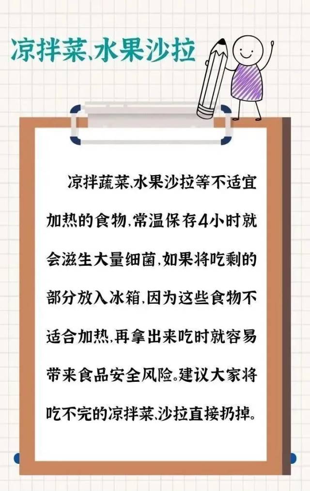 在一餐中注定要剩菜时,应优先将蔬菜都吃完,肉类荤菜吃不完的可以留到下一顿。具体可以参照下面这个保存时间排行榜: