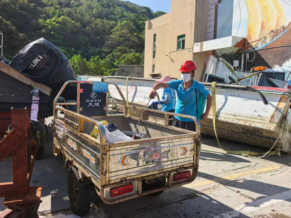 工作人员全面清倒花盆、水桶、废旧鱼缸等积水容器,同步清理废弃鱼排、塑料桶,清除卫生死角,切断蚊虫孳生环境。在人员密集区启用超低容量喷雾进行空间消杀,绿化带实施常量喷雾形成防护带。与此同时,工作人员还采取“入户+线上”方式同步科普,讲解基孔肯雅热防控要点、“七天七招”灭蚊法,并通过滚动播放LED提示,引导海岛居民“清积水、防叮咬”,筑牢防控屏障。