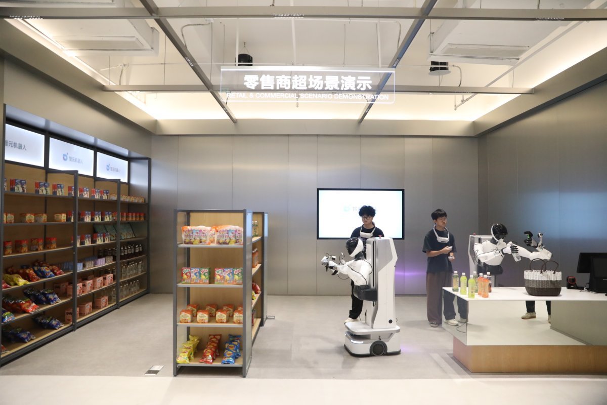 精准把控流速将红茶倒入杯中、指尖轻触关闭安防预警、默契配合传递工业样品、操作收银机完成扫码、自助进行衣物叠放……走进珠海具身智能应用创新中心(以下简称“创新中心”),记者看到具身智能机器人的“实战秀”正生动上演。这些曾经存在于科幻电影的场景,如今已成为珠西科学城覆盖工业、康养、零售、安防和科教等领域的真实场景演示,勾勒出“人机共生”的未来图景。