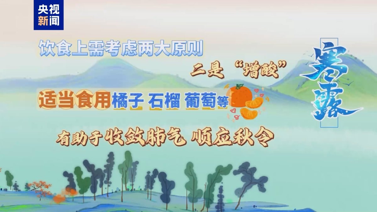 专家表示,从白露到寒露,“燥”是贯穿秋季的主要气候特点,因此“减辛增酸、润燥养肺”是不变的调理核心。饮食上需要考虑两大原则: