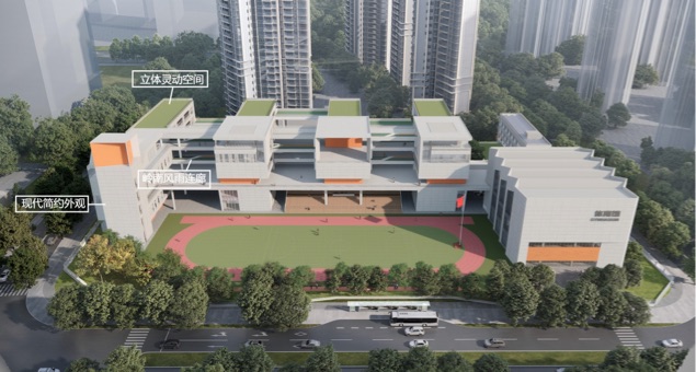 项目旨在打造高标准、高起点的新型现代化国际化公办学校,校园涵盖教学及辅助用房、行政办公用房、生活服务设施以及选配用房,如录播教室、STEAM创客实验室、围棋室、艺术创意空间等,并设有地下交通分流中心和丰富的室外配套,充分体现现代化、国际化办学理念,适应素质教育与个性化学习需求。