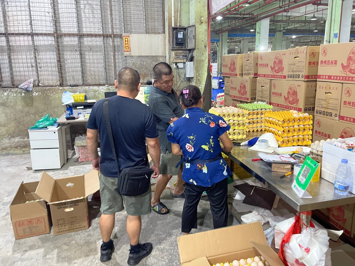 本次合作源于2025年遵义特色优质农产品产销对接考察活动及后续的政企对接会。浩东农贸综合批发市场在参会期间敏锐捕捉到遵义鸡蛋的品质优势,随即组织市场调研。尽管贵州鸡蛋因品质较高,导致成本略高于普通产区的成本,但其出色的质量与全面的食品安全检测结果,最终打消了商户对市场接受度的顾虑,坚定了引进信心。