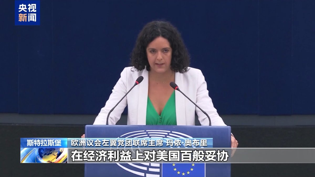 欧洲议会左翼党团联席主席玛侬·奥布里:冯德莱恩向特朗普投降,在经济利益上对美国百般妥协,牺牲了欧洲人的利益。
