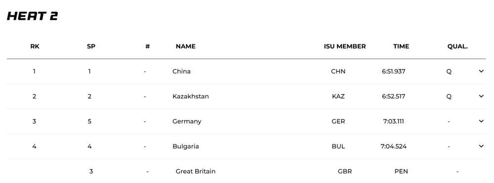 中国队当天派出张柏浩、李文龙、刘少林和林孝埈参加男子接力的角逐。在比赛还剩20圈时,英国队处于领滑位置,蛰伏在英国队身后的小将张柏浩突然发力,上演丝滑反超,此后中国队逐渐扩大领先优势,并第一个冲过终点线。英国队在比赛临近结束时甩开哈萨克斯坦队的缠斗,紧随中国队冲过终点,但最终被判犯规,哈萨克斯坦队排名小组第二,和中国队携手晋级。
