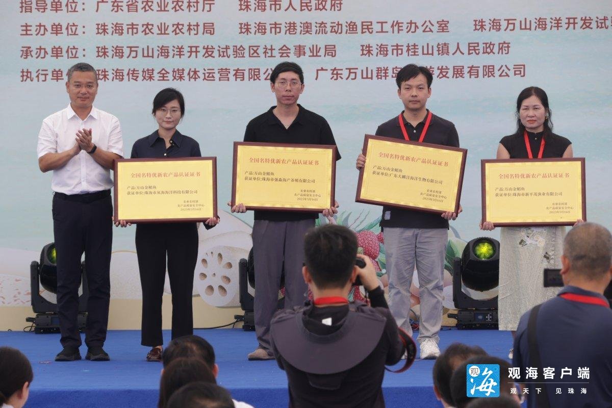 活动现场,为万山金鲳鱼获得“全国名特优新农产品”认证的四家企业授牌。