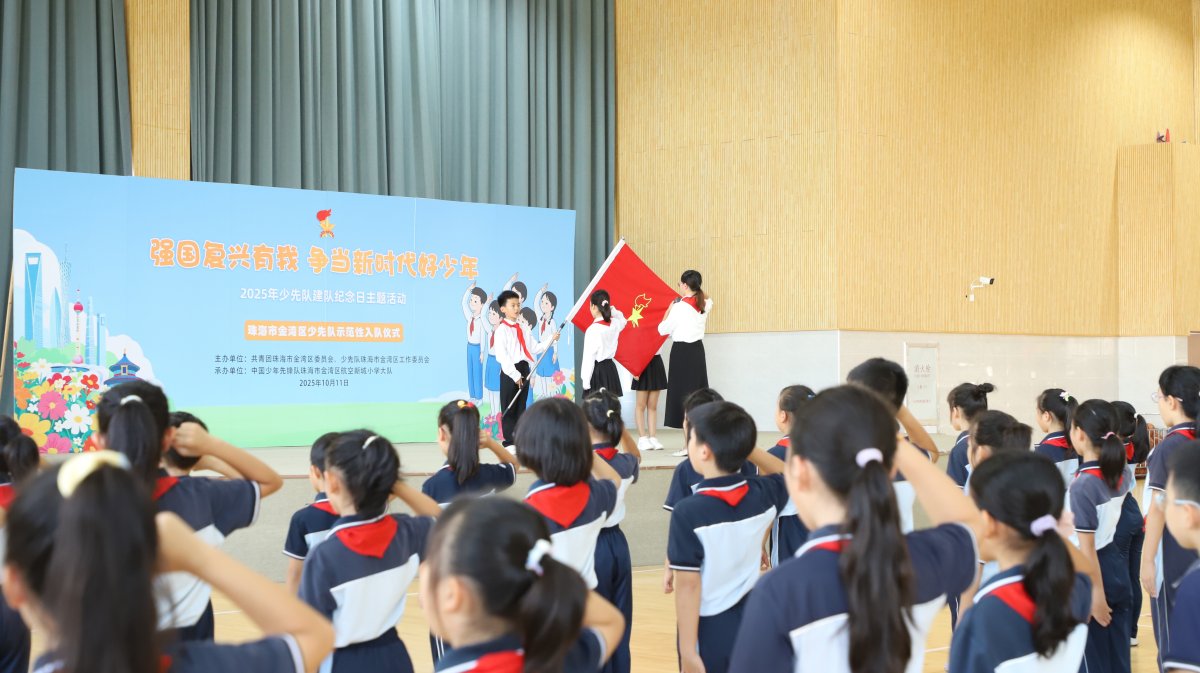 在“十·一三”建队纪念日前夕,10月11日,由团金湾区委、区少工委主办的“强国复兴有我 争当新时代好少年”金湾区少先队示范性入队仪式在航空新城小学举行。
