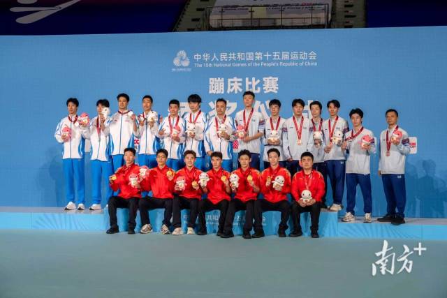 10月11日,十五运会蹦床项目男、女团决赛的争夺结束。经过激烈的角逐,江苏队以182.24分获得男团冠军,山西队以167.81分获得女团冠军。浙江队、湖南高速队分别获得男团二、三名,浙江队、江苏队分别获得女团二、三名。