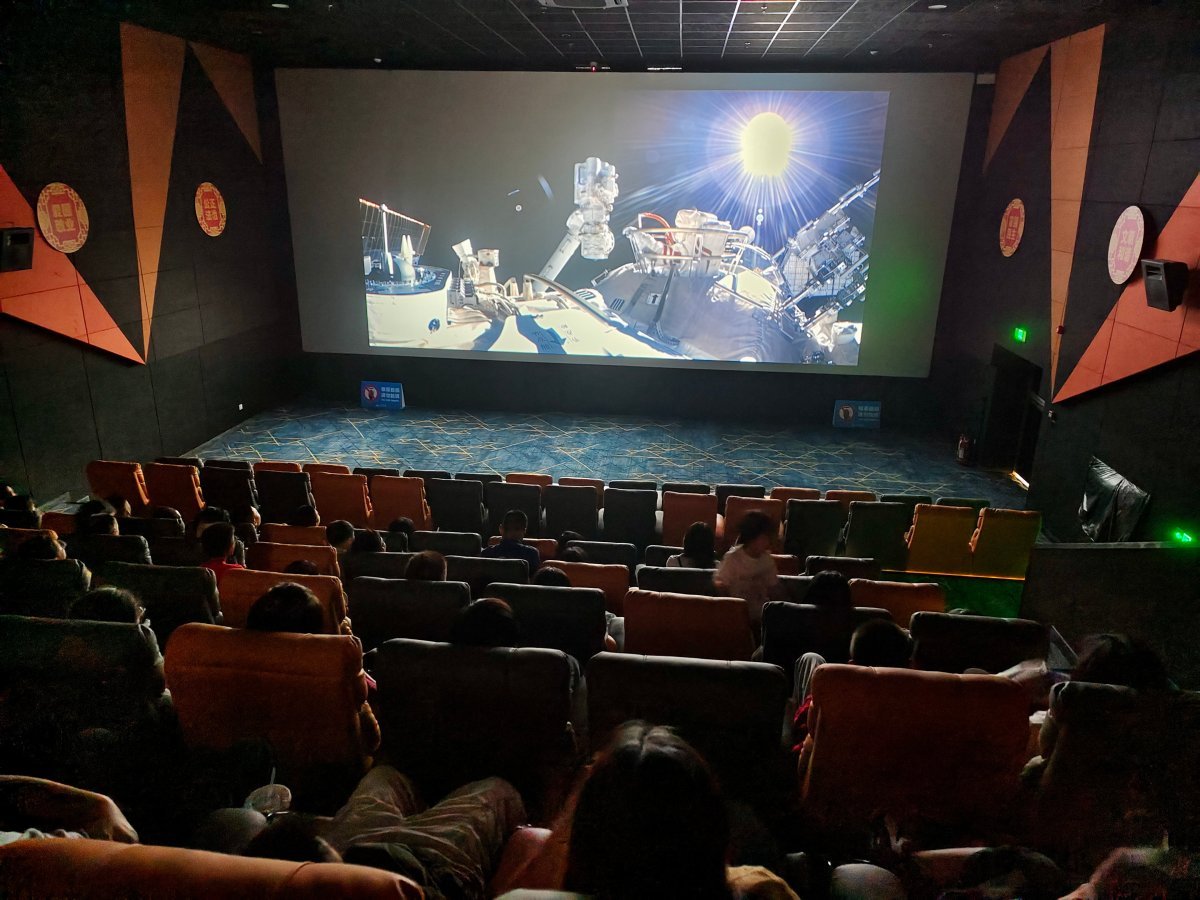 入场时,社工与万达影城工作人员引导儿童按顺序入座;观影期间,社工与工作人员分散坐在儿童周围,实时关注孩子们是否有如厕等需求。当神舟十三号航天员工作的画面出现在银幕,当“太空喝水”引发阵阵惊叹……探索太空奥秘的种子,此刻已悄然在孩子们心中种下。“我看到地球了,像是漂浮在空中一样,太神奇了!”小芝芝(化名)开心说道。