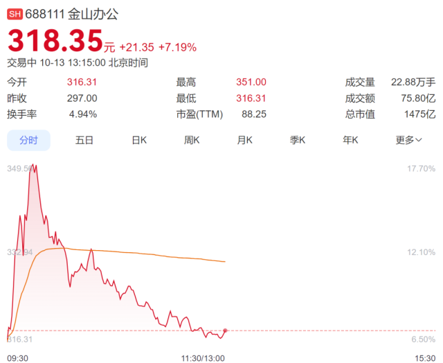 此外,A股金山办公一度涨超17%,截至发稿,涨7.19%,报318.35元/股。