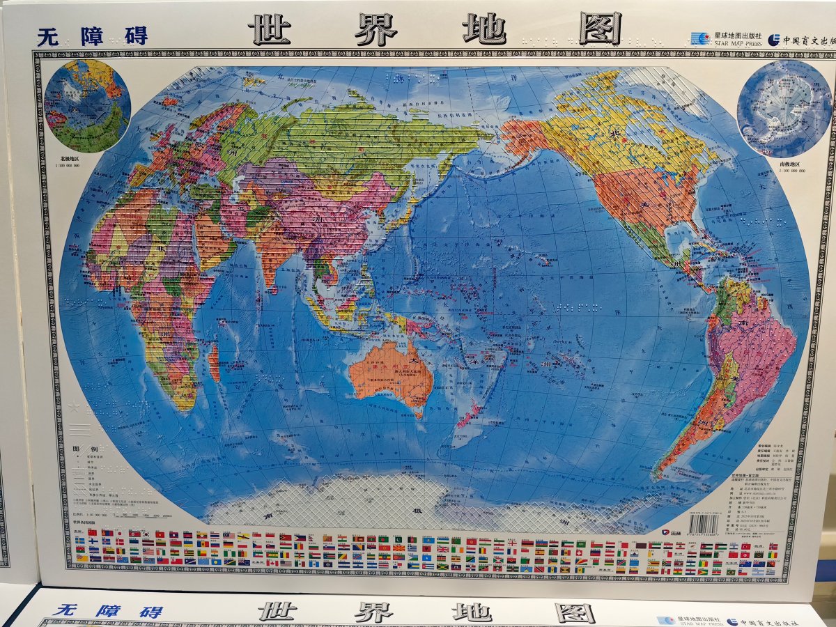据介绍,无障碍地图采用加厚耐磨特种纸,防水防潮,盲文标注与地理轮廓精准对应。其中,《中国地图》以触感增效标注省级行政区划和重点地理标志,《世界地图》利用不同增效纹理标注七大洲四大洋。