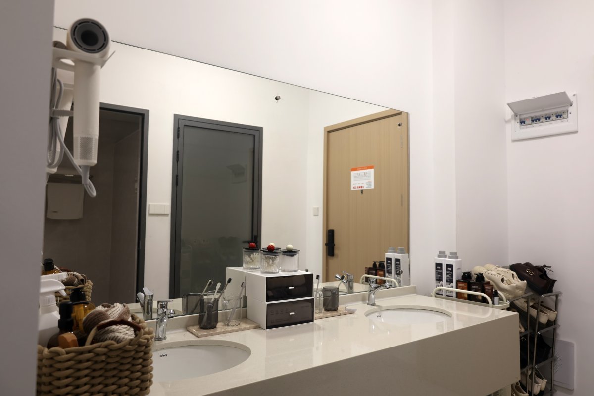 宿舍内还设置宽敞明亮的公共厨房和洗衣间。在洗衣间内,崭新的8台洗衣机整齐排列,并规划熨烫衣物的区域,方便住户集中处理日常家务。