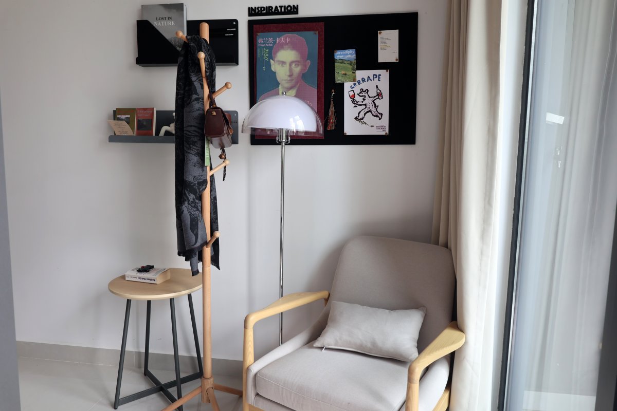 公寓楼下,崭新的健身器材安装到位,智能售货柜已就绪,工作人员正仔细修剪草坪。公寓楼内,每栋楼均配备六台电梯,智能门锁轻轻一按便应声开启。四人间内,每人配备独立书桌、储物柜和充电接口,上下铺采用加固钢材,床底预留收纳空间。单人间内,沙发、书桌、空调、热水器等家电一应俱全。“所有户型都是精装修,家具家电配齐,真正实现拎包入住。”陈建军表示。