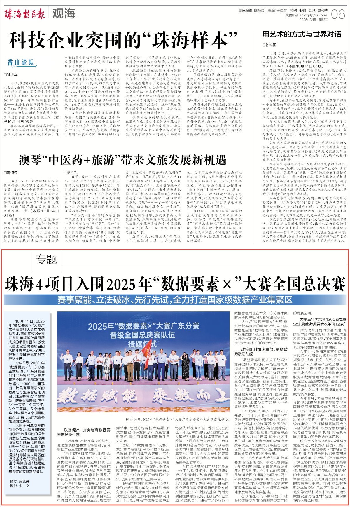 从办好“数据要素×”大赛,到创新数据资源的顶层设计,从夯实数据基建的“数字根基”,再到厚植产业生态的“肥沃土壤”,珠海正以先行先试的姿态,培育数据要素市场“热带雨林式”的创新生态。