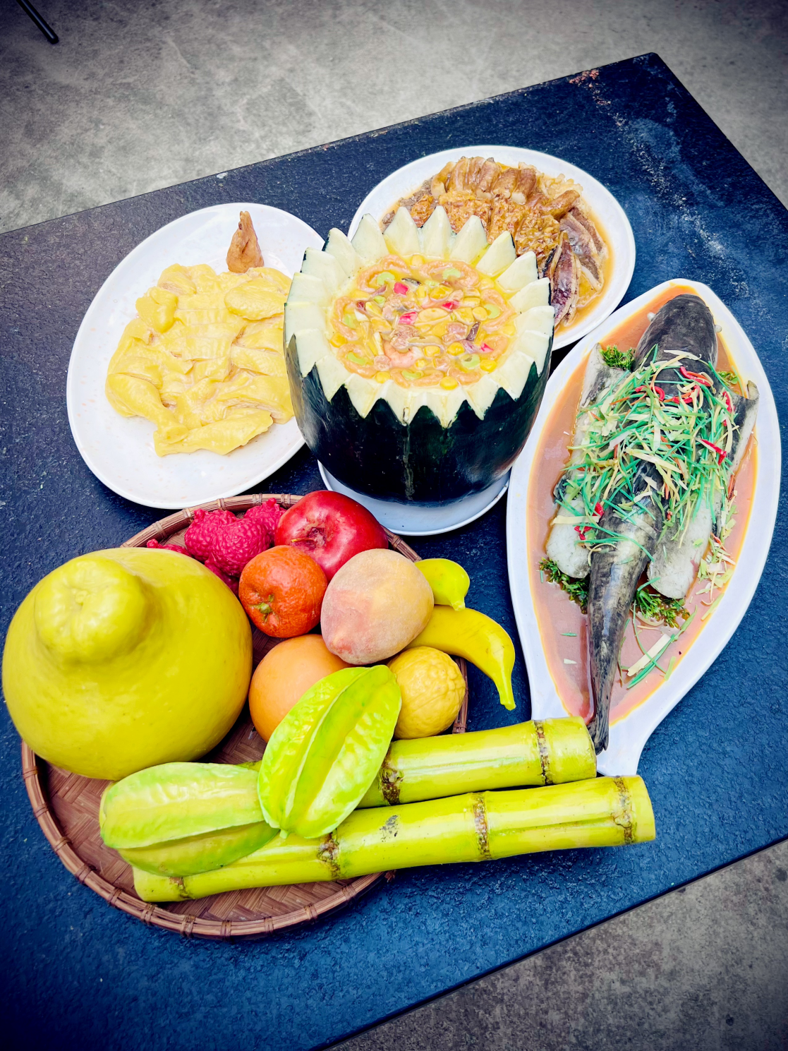 初次拜访杨玉榕大师时,我说我们要用镜头记录精湛的秋色技艺。她却笑着说:“想拍好秋色,得先跟我去趟菜市场。”我有些诧异,但还是跟着她去了。在鱼档前,她仔细翻拣着鱼鳞,告诉我哪一片透光性好,哪一片形状完整。她说,几十年前,老师傅也是这样带着她,从最寻常的生活中认识材料的。后来,我又跟着何信大师的女儿雅欣,穿街走巷,站在烧腊店前反复端详烧鹅的皮色与油光。她说,父亲创作时,每一处细微的纹理,都力争做到百分百还原。那一刻我忽然明白:秋色的根,不在博物馆里,而在佛山人热气腾腾的日常中。