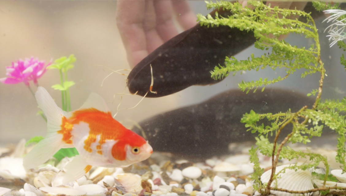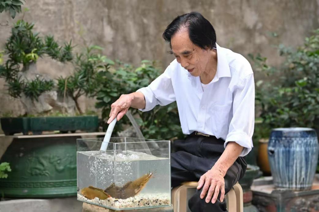 更令人称奇的是“水中塘鲺”,用调配浓度恰到好处的胶水,徐徐注入模具,放入水中待其凝固后脱模,一尾“塘鲺”跃然水中,须鳍轻颤、姿态灵动,令人不禁为这虚实相生的绝妙境界而惊叹折服。