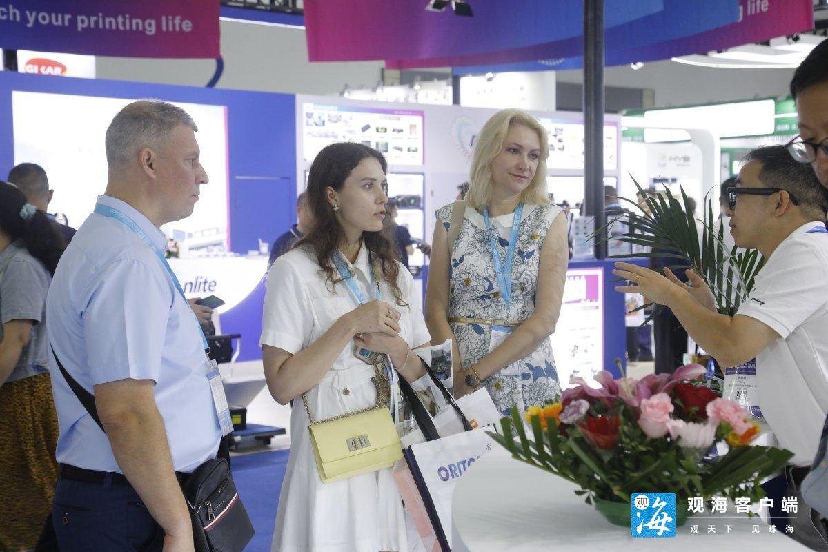 作为珠海本土企业,已经参展十余届的“熟面孔”——珠海奥美亚数码科技有限公司,此次携墨水产品与创新打印方案亮相,充分展现本土企业的“智造”硬实力。公司市场经理黄珍珍介绍道,本届展会除了带来办公墨水、工业打印墨水等常规产品,还现场带来了服装纺织类的DTF打印方案、礼品包装类的水晶标打印方案,以及备受瞩目的流水线AI视觉UV打印方案。