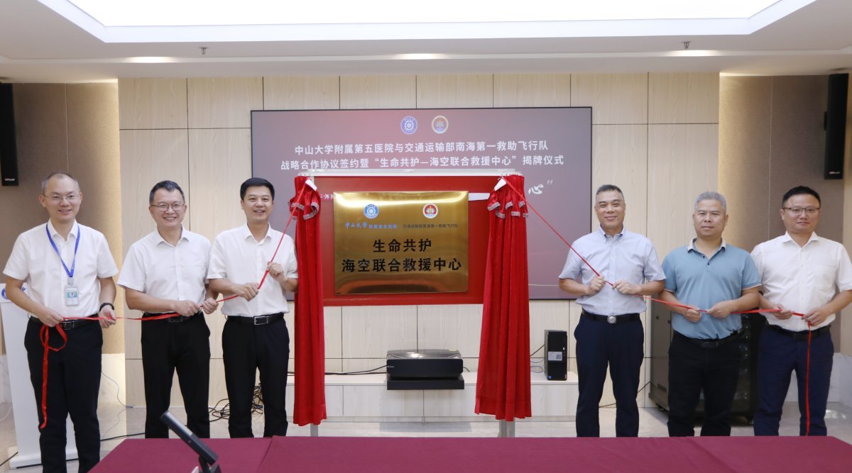 10月16日,中山大学附属第五医院与交通运输部南海第一救助飞行队在珠海正式签署战略合作协议,并共同为“生命共护—海空联合救援中心”揭牌。作为粤港澳大湾区首个海空联合救援中心,该平台的建立标志着珠海海陆空立体应急救援体系建设取得重要突破。