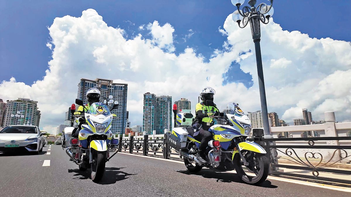 “桦加沙”来袭前的夜晚,王梓轩与队友们顶着不断增强的风力沿情侣路展开巡逻,身上的骑行服湿了又干,后背凝结着白花花的盐渍。“报告!隐患点排查完毕!”他一边用对讲机汇报实况,一边迅速扶正被风吹倒的隔离护栏。