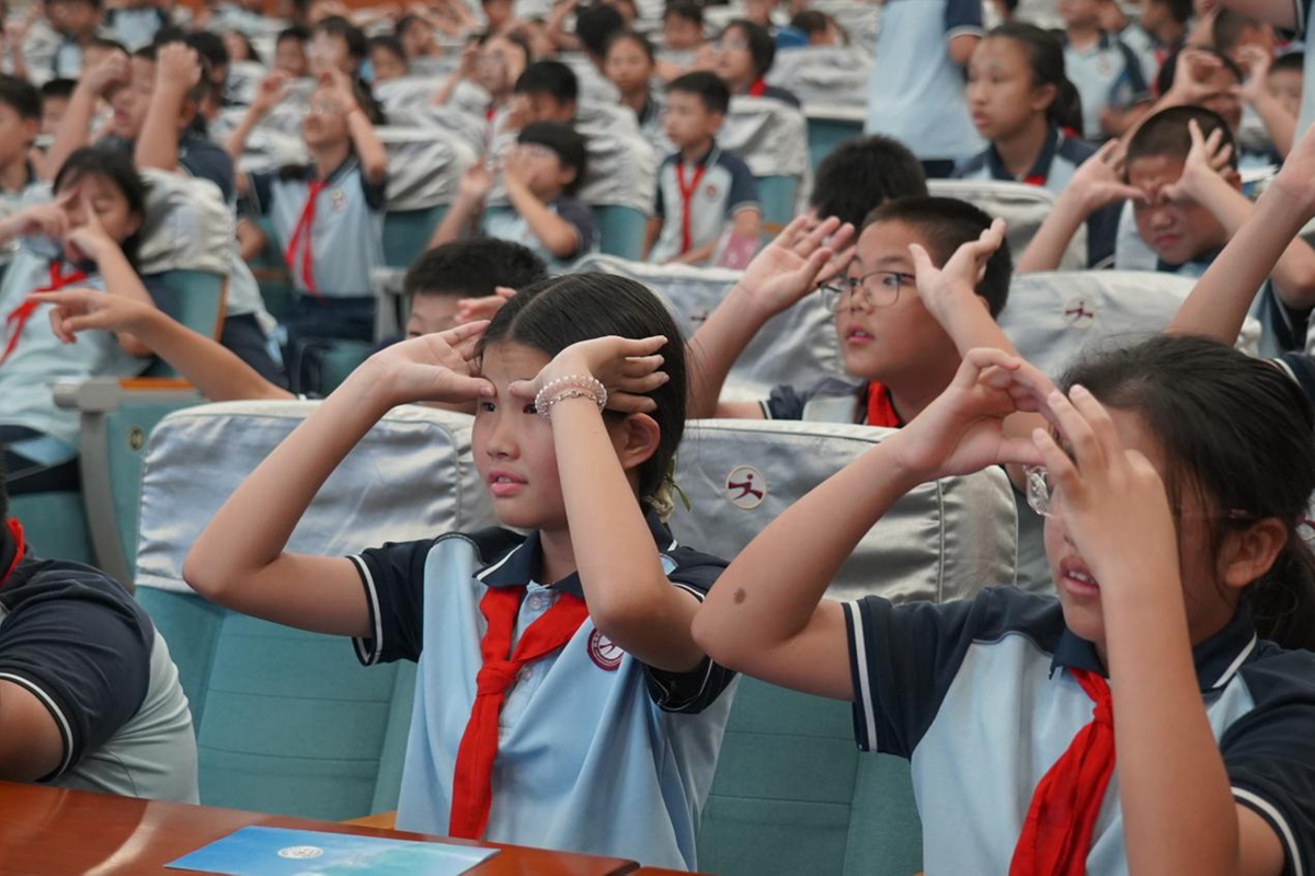 10月17日,由珠海市卫生健康局、珠海市教育局联合主办、珠海市健康促进中心承办的“2025年时令节气与健康主题系列活动”在金湾区虹晖小学成功举办。本场活动聚焦青少年近视防控,宣讲主题为《明亮的未来,从“眼”开始》,该校组织了六年级四百余名学生参与。