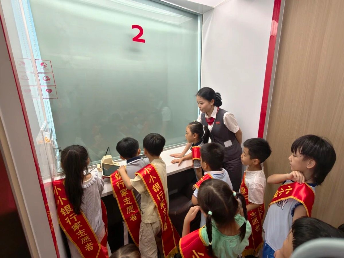 工作人员手把手教孩子们练习职业礼仪:双手交叠放于身前的站姿、面带微笑的“您好,请问有什么可以帮您?”问候语。这堂“职场第一课”,让孩子们在仪式感中直观感受银行工作的严谨与专业。