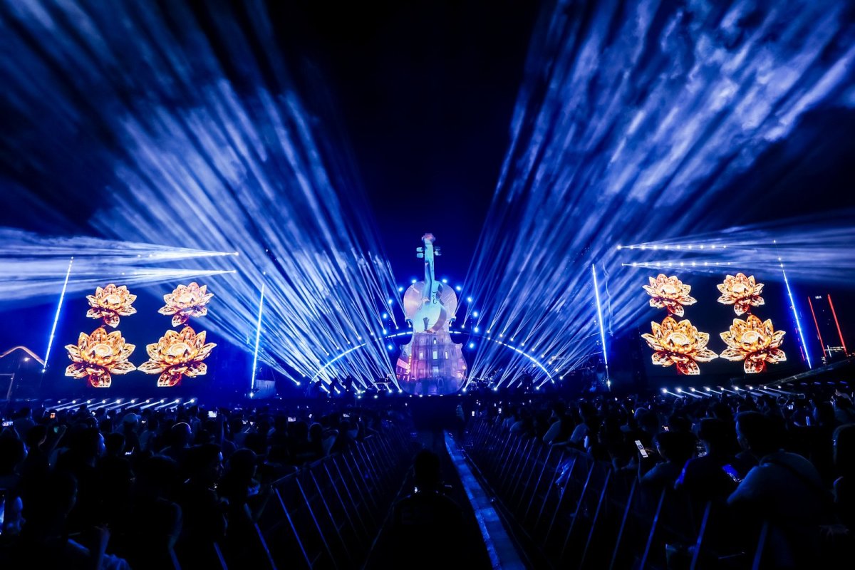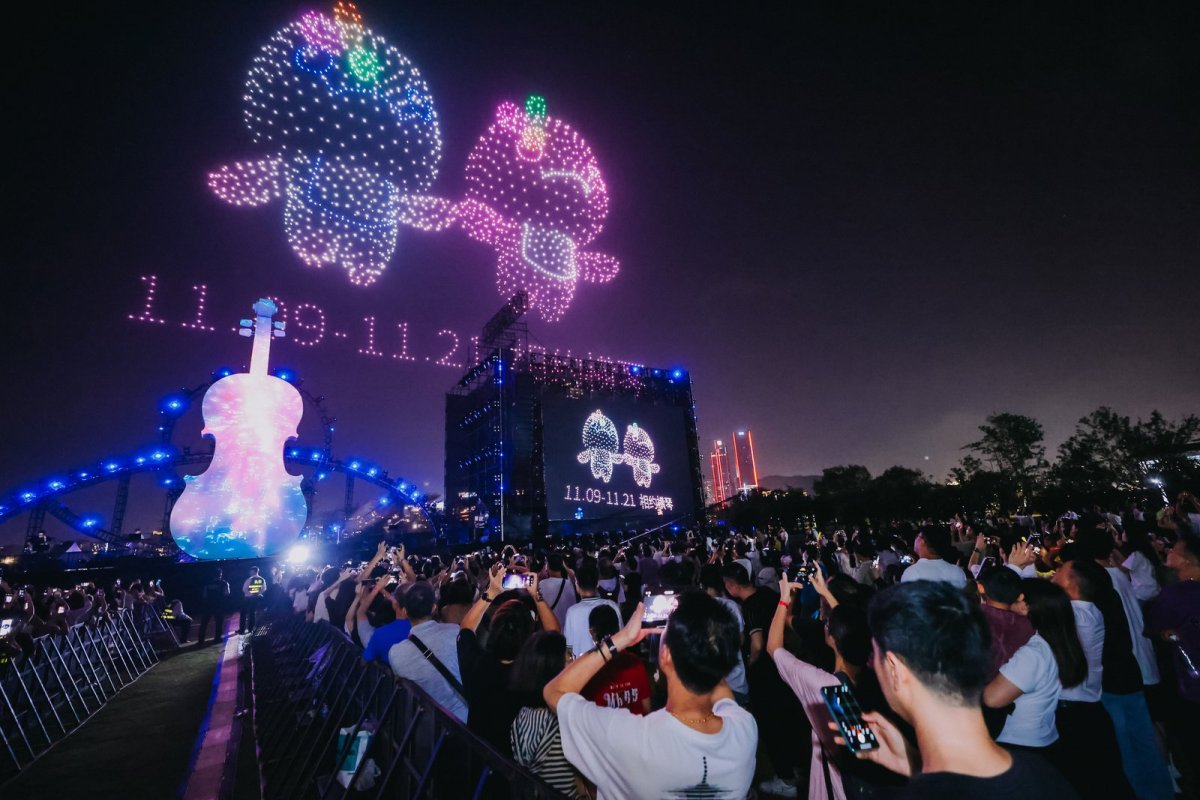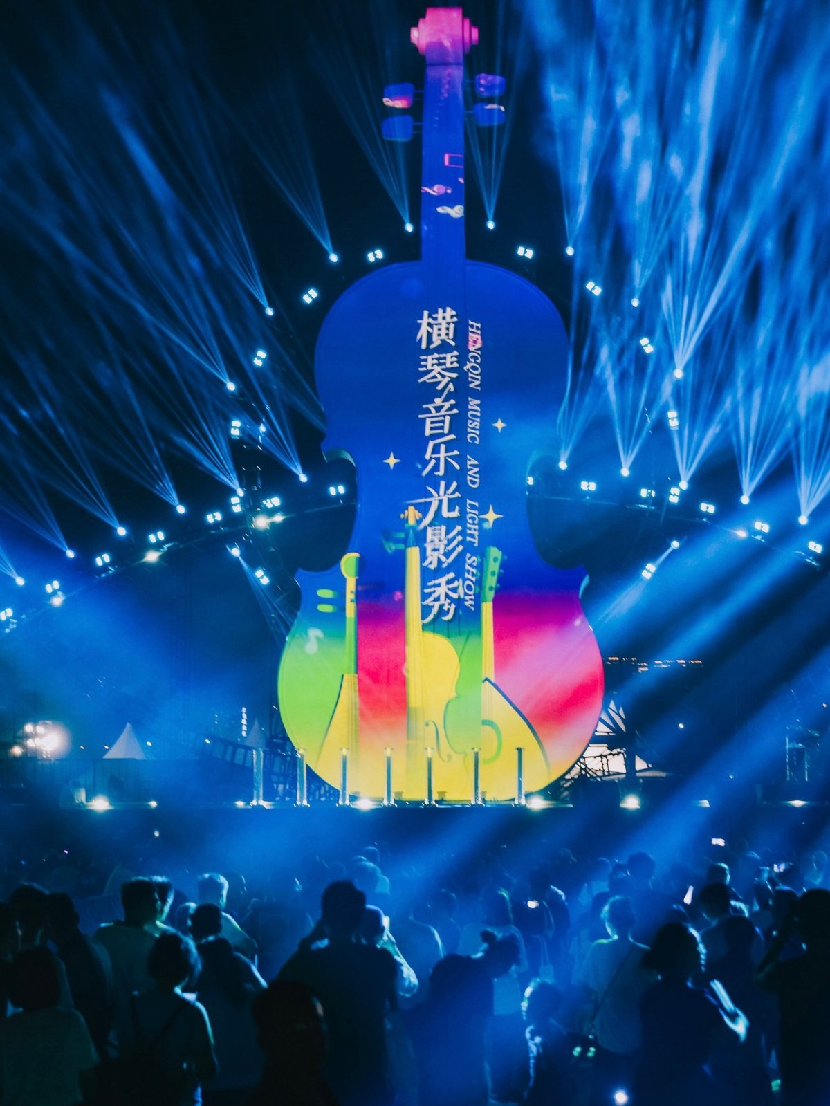 据悉,此次活动由横琴粤澳深度合作区民生事务局主办,以“科技赋能文化,艺术连接湾区”为主题。活动现场精彩不断。一座20米高的巨型“小提琴”艺术装置成为全场焦点,搭配2000架无人机打造的“空中光影剧场”,呈现出一系列震撼的视觉效果。