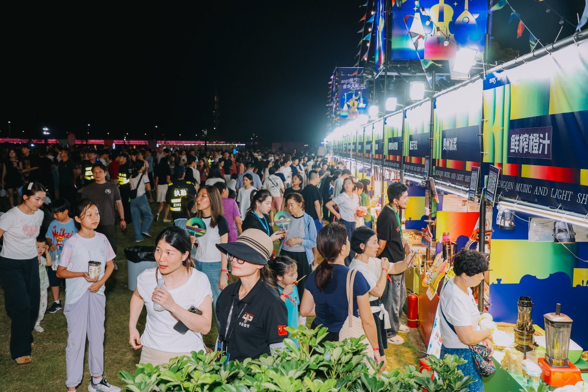 活动现场还设置40余个美食与文创摊位,为琴澳居民和旅客带来了丰富的味蕾体验。活动特别邀请正安吉他、珠遵新茶饮等特色商家参与,还有各类精品小吃,使市民与游客在光影交融的氛围中,既享受了美食的乐趣,又真切感受到东西部协作的发展成果。据统计,摊位总销售额突破40万元。同时,活动效应辐射全岛,合作区各大商区在活动期间人流车流显著增加,有效带动周边餐饮、娱乐、酒店等行业经济效益,展现出“文化+”所带来的蓬勃生机。