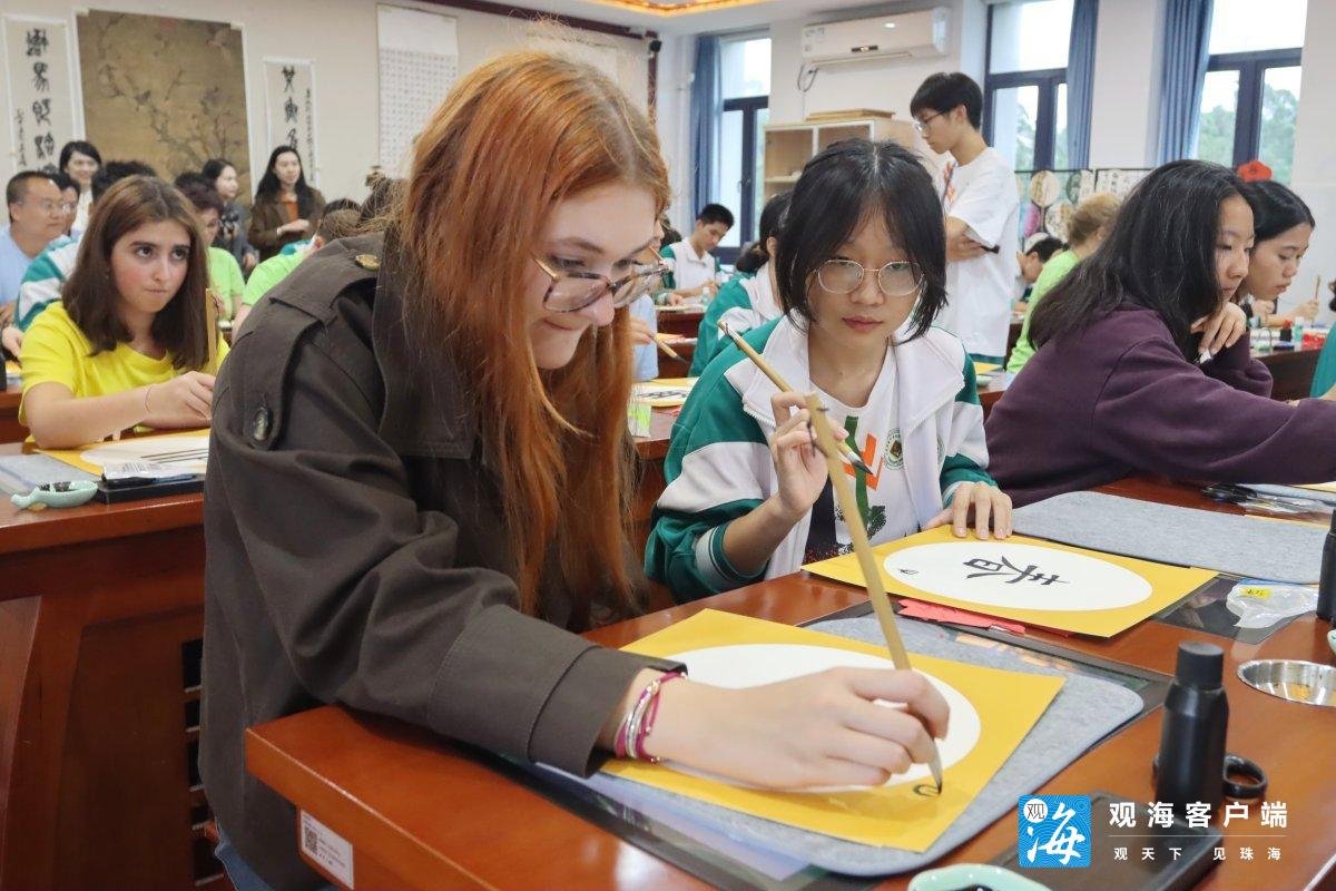 “书法很难,但是这里氛围很好,大家都很欢迎我们,所以我很喜欢这个课!”法国梅斯市德拉萨尔学校(Institution de la Salle)学生Asya Yildirim说。10月22日,在市委外办支持下,该校师生一行18人前往珠海市广东实验中学金湾学校进行交流。据悉,这是他们珠海之行的最后一站,此前他们已经在珠海市艺术高级中学进行了交流学习,珠海师生的热情让法国师生倍感温暖。