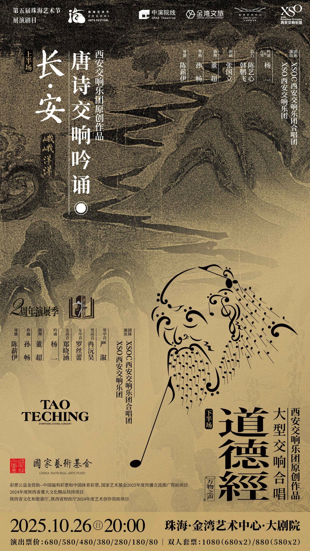 10月25日、26日,两场精品演出将亮相珠海金湾艺术中心舞台:一场是由西安交响乐团呈现的唐诗交响吟诵《长·安》与大型交响合唱《道德经》,另一场是由香港敲击襄Toolbox乐团打造的音乐剧场“奇妙太空·襄聚神舟”——致敬中国航空航天神舟系列。两场演出均以惠民票价亮相。
