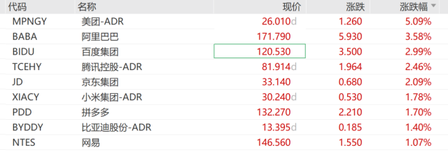 中概股则逆势走强,截至发稿,纳斯达克中国金龙指数涨超1.5%。个股方面,美团涨5%,迅雷、文远知行涨超4%,百度集团、阿里巴巴涨超3%。