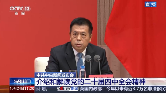 中共中央今天(24日)上午举行新闻发布会,介绍和解读党的二十届四中全会精神。