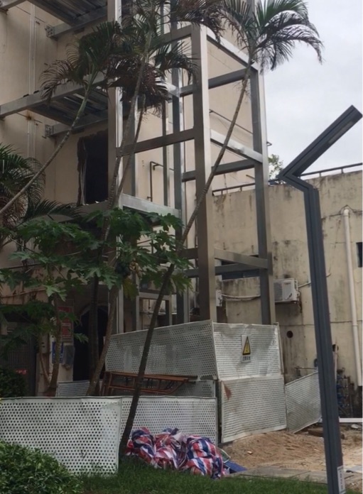 起火位置在单元楼加建的一处电梯框架内。事发当时,潘旭东正在派送快递。途经14栋二单元时,他敏锐发现二楼电梯施工现场施工人员因电焊作业操作不当引燃防护帆布。面对突发情况,潘旭东沉着应对,立即使用现场灭火器进行扑救,及时控制了火势蔓延。