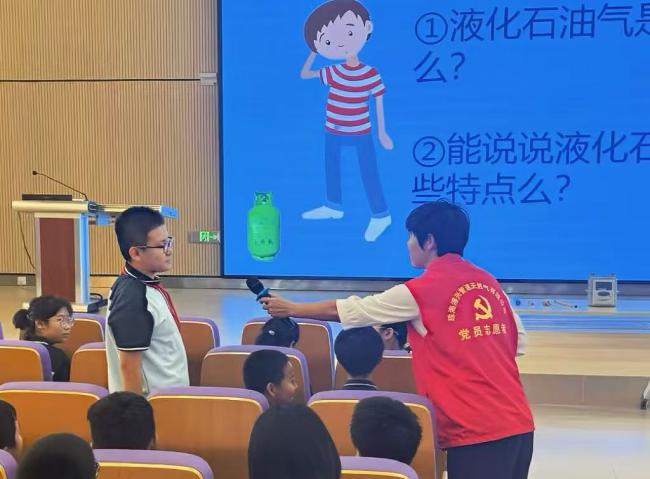 课堂上,燃气安全宣讲员没有照搬枯燥的理论,而是带着四氢噻吩(燃气泄露气味模拟剂)、家用燃气报警器等“教具”,用生活化的语言拆解安全知识。“大家记住,天然气本身是无味的,这股‘臭鸡蛋味’是特意添加的警示剂,一旦在家闻到,第一步要做的不是开灯、打电话,而是轻轻打开门窗通风!”宣讲员一边演示“教具”的使用方法,一边结合真实案例,以生动活泼的方式介绍如何安全使用天然气、如何判断燃气泄漏、发现燃气泄漏该怎么办等燃气使用基础知识,普及燃气安全常识和应急处置方法。通过有奖问答等方式,激发孩子们对学习燃气安全知识的兴趣。活动中,他们认真聆听,踊跃发言,争先恐后回答问题,在欢快的氛围中,心中都播下了“安全用气”的种子。