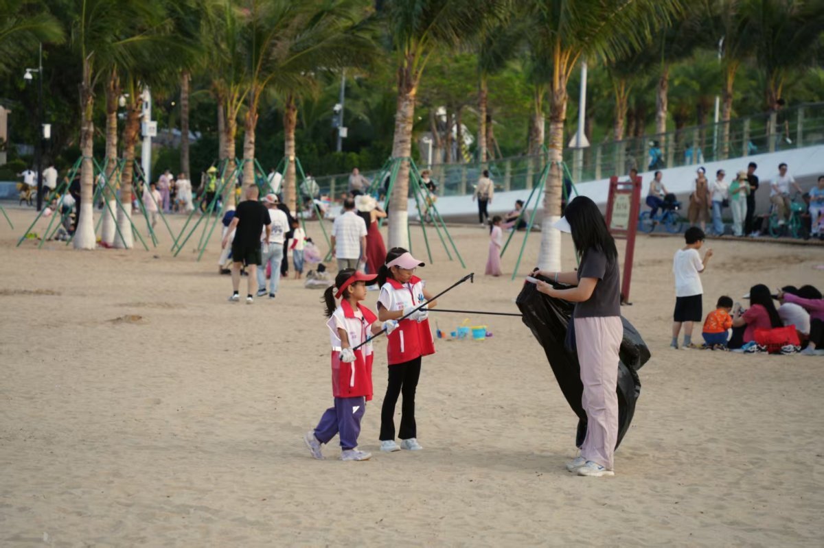 活动设置了珠海市生活垃圾分类志愿小小宣讲团向环卫工人献礼及授章环节,实现了环保理念与奉献精神的代际传承。同时,“爱心集市”为环卫工人提供了义剪、义诊、普法等多元志愿服务,国药太极、广东勤德等“爱心企业”还为环卫工人准备了“爱心礼包”,让环卫工人切身感受到全社会的关怀与温暖。随后开展的沙滩净滩行动,更将现场氛围推向高潮,在场的各单位领导、嘉宾与小小志愿者们一起以实际行动践行“垃圾不落地”,进一步提升了十五运会公路自行车赛沿线的环境品质。