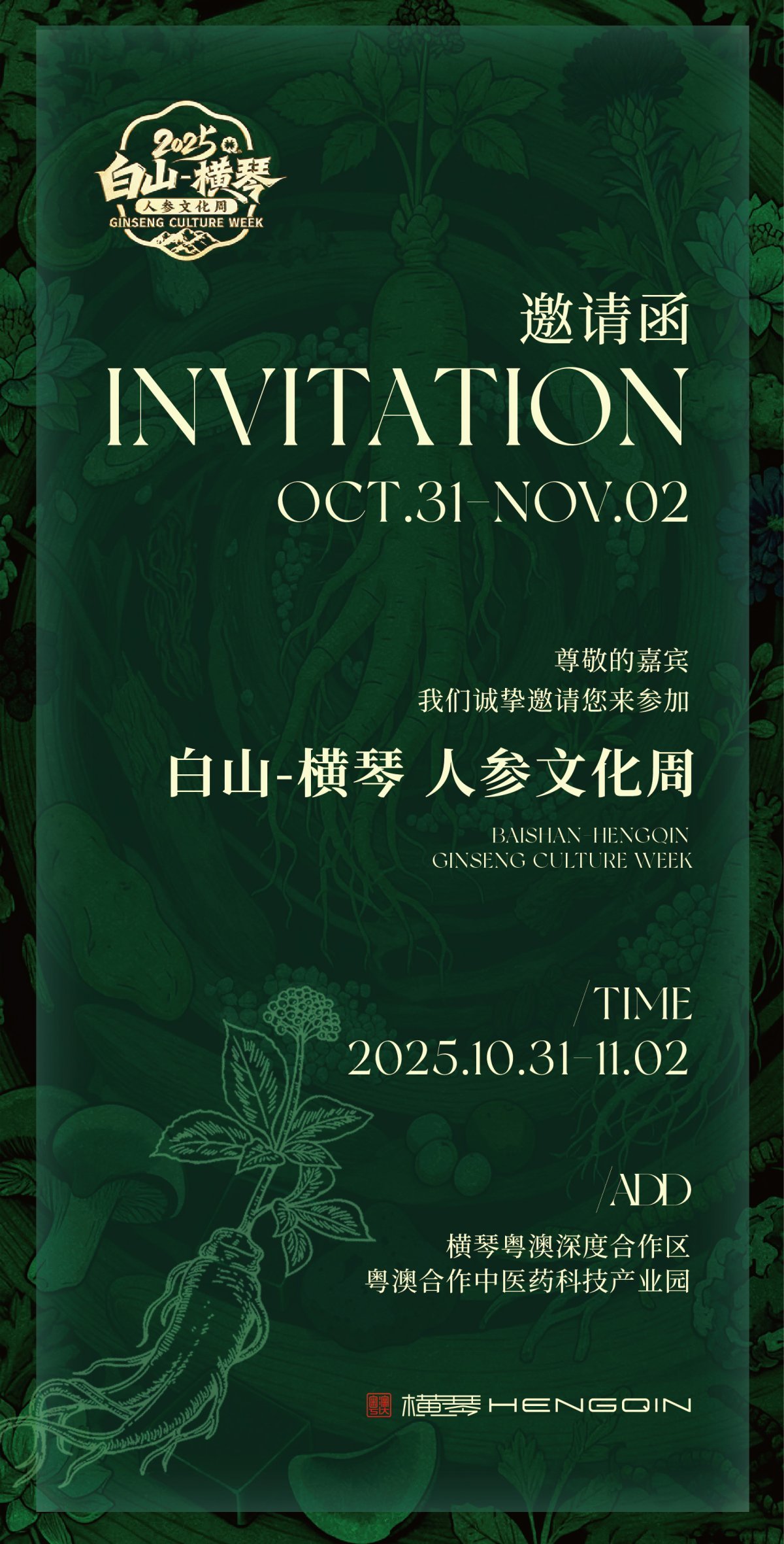 10月31日至11月2日,“白山—横琴”人参文化周将在粤澳合作中医药科技产业园举行。