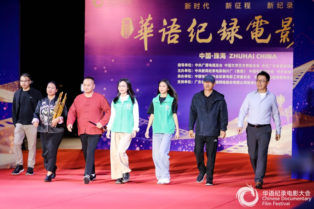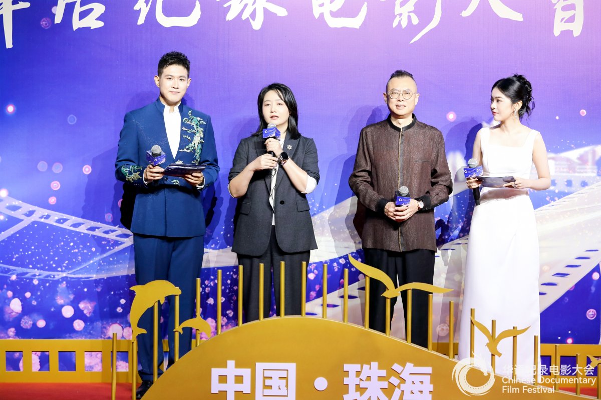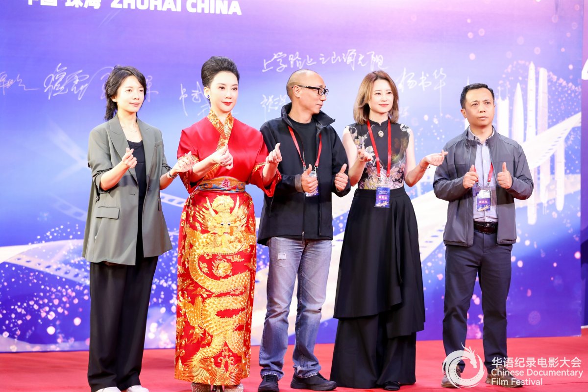 首先走上“荣光大道”的是纪录电影《中华白海豚》的总导演闫东,导演于海霞,及影片的主创团队们,《新三峡》的导演杨书华。纪录片《中华白海豚》以自然人文双线叙事,追拍雌性中华白海豚“珠珠”的成长与回归,借白海豚重返港珠澳大桥等故事,既揭示“护白海豚即护人类”的主题,也呼应第十五届全运会倡导的生态与活力理念。“人与白海豚共同和谐生存,是我们最大的期望和期盼。”该片导演闫东表示,影片就是要展现人与自然和谐相处、人与白海豚同呼吸共患难的命运共同体。他还透露,《中华白海豚》有望在十五运会于粤港澳大湾区举办之际走上院线与全国观众见面。