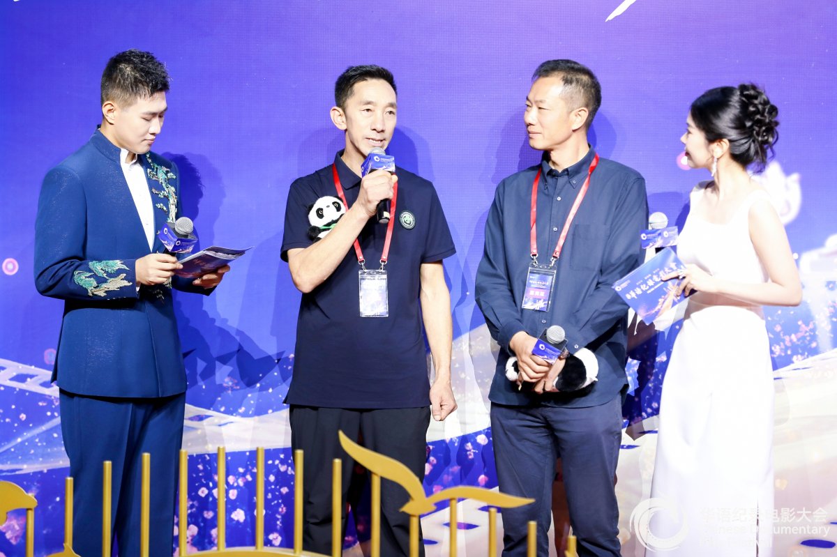 第三组走上“荣光大道”的是纪录电影《熊猫奇遇记》中的主人公牟世杰爷爷、导演杨懿丁、张晋,《神奇动物在高原》宣传统筹孟庆璟,《桃李无言》的导演蒋浩。纪录电影《熊猫奇遇记》以大熊猫的成长线贯穿始终,讲述了大熊猫的诞生、成长、野化、放归、“养老”等故事,表现了熊猫奇妙又充满挑战的一生。该片主人公牟世杰现场科普了“野化培训专家”的具体工作内容:“和圈养的大熊猫不同,野化放归的熊猫幼崽不能接触人,要靠熊猫妈妈教会它生存的本领。我们只是负责照顾好熊猫妈妈,同时监测熊猫幼崽。”