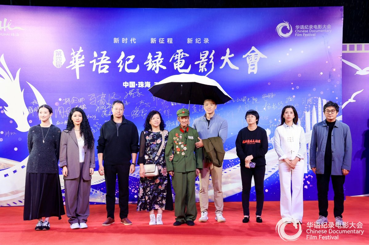 最后一组走上“荣光大道”的是纪录电影《山河为证》导演韩金娜,《隐者山河》导演郭旭锋,纪录电影《我的身后是祖国》的导演彭韬、葛小娟,志愿军老兵何良才,还有纪录电影《父辈的天空》总制片人杨丽,制片人沈青青。