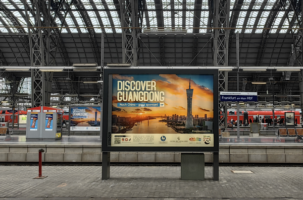活动期间,广东文旅在法兰克福主要火车站及地铁站推出了“DiscoverGuangdong(发现精彩广东)”主题户外广告,吸引了大量往来旅客驻足观看,向德国民众全面展示岭南文化之美、创新活力之美。