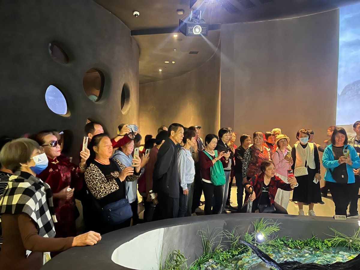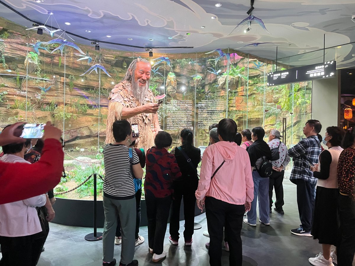 横琴中医药文化体验馆将传统中医药文化与现代展陈艺术完美融合。馆内陈列丰富,药材标本制作精良,场景复原栩栩如生,从神农尝百草场景复刻到沉浸式多媒体药径漫游,处处体现匠心独运的设计与工艺,充分激发长者们的好奇心与求知欲。长者们在此不仅能近距离观察药材形态,还能通过互动装置体验“闻香识药”“触感辨材”的乐趣,感受中医药文化的博大精深。