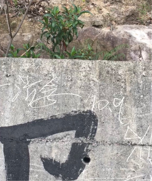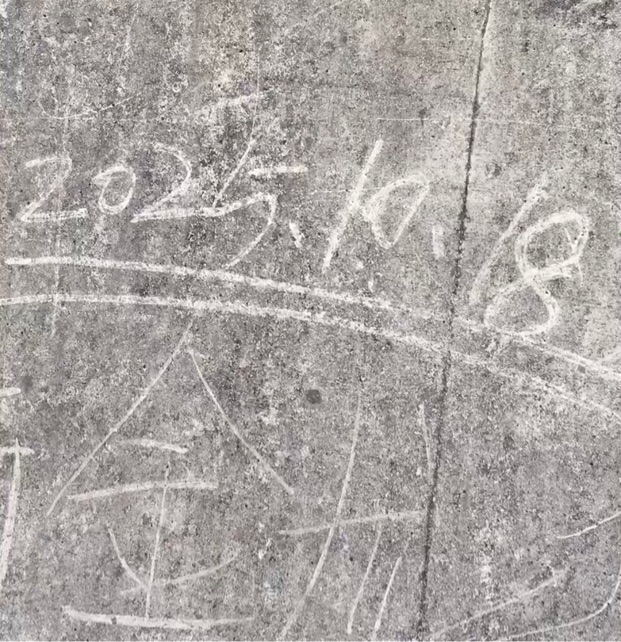 今年10月中下旬,记者数次走访栈道发现,这段长10余米、高2米的挡土墙墙面已无完整空白区域,有“到此一游”的字迹和随意勾勒的简笔画,部分刻画痕迹较深,显然是用尖锐工具划刻所致。