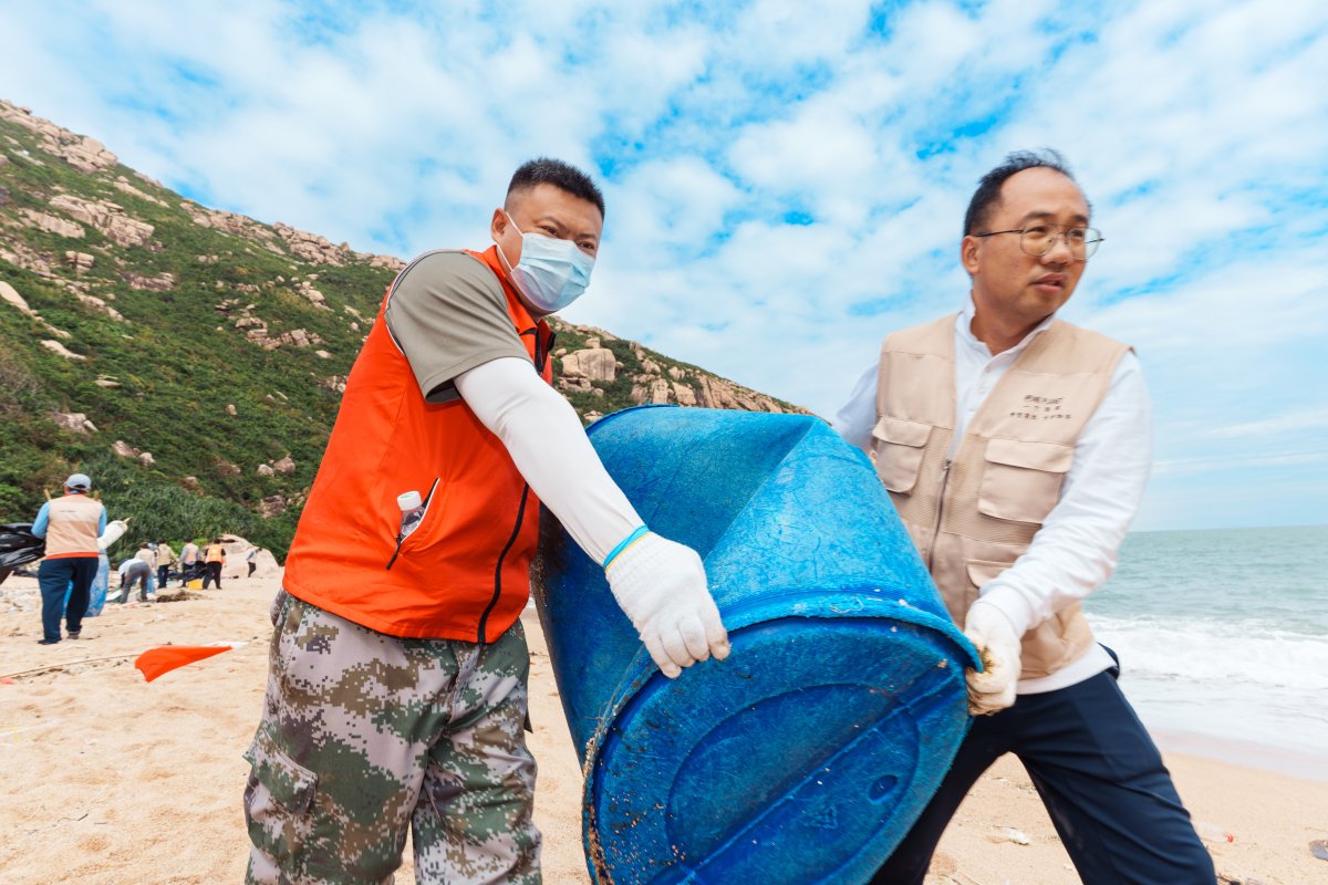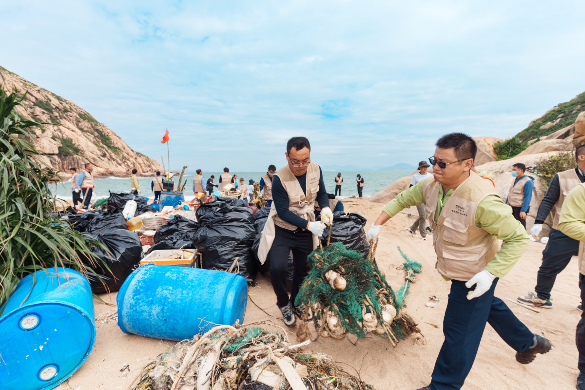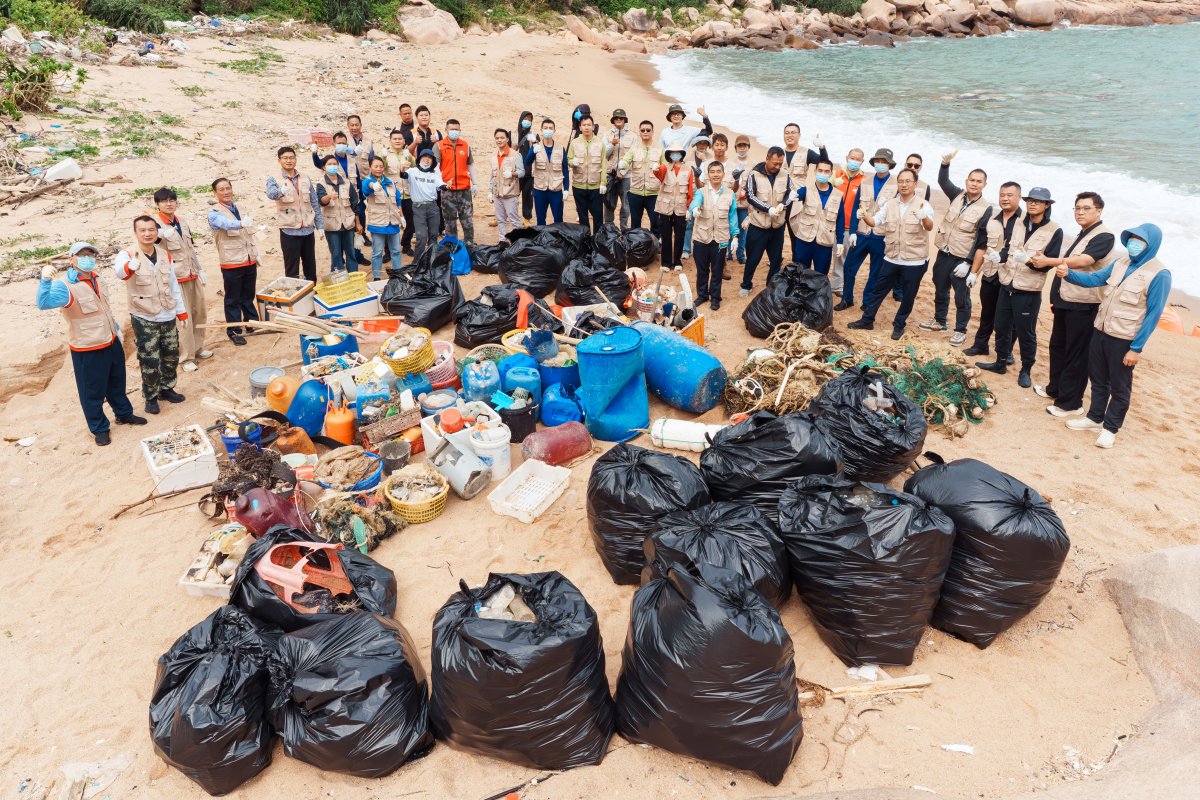 10月25日,志愿者们分组展开行动。一组在沙滩与潮间带进行地毯式清扫,另一组具备潜水资质的志愿者则潜入水下,清理礁石缝隙中的垃圾和废弃渔网。经过3.5小时持续作业,共清理出塑料瓶、泡沫碎片等各类垃圾552公斤,其中废弃渔业垃圾227公斤,可回收塑料瓶罐2400余个。