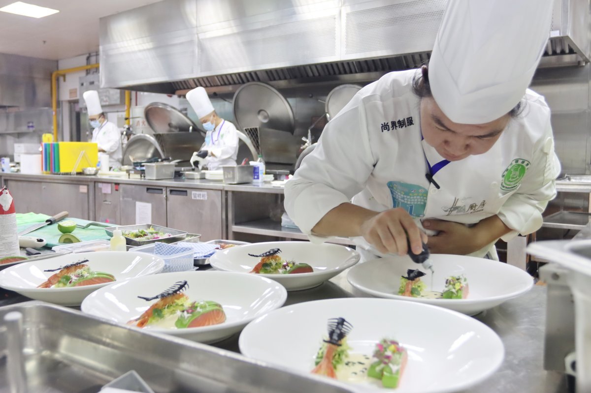 比赛现场,从初赛中脱颖而出的20名选手同台竞技,在180分钟内完成了“鸡肉清汤”“海鲜开胃前菜”“肉类主菜”三大模块的激烈比拼。赛事严格对标《西式烹调师国家职业标准》高级工(三级)及以上要求,并借鉴世界技能大赛评分体系,全面考核选手的西餐综合技能与职业素养。值得一提的是,进入决赛的选手均可获得内地的西式烹调师高级(三级)职业技能等级证书与澳门的西式烹调师高级职业技能证明书,打通“一赛双证”的粤澳技能人才评价互通机制。
