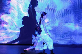 “岛韵·诗意栖居”篇章通过《港湾》《桂山岛的海水》《大海练习册》等组诗,配合双人舞《水上新娘》的曼妙舞姿以及独诵《东澳岛,山海经书屋远眺》,展现诗人眼中“会呼吸的诗意栖居”。