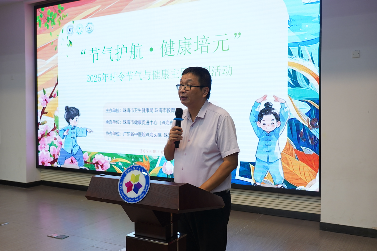 珠海市卫生健康局与珠海市教育局、珠海市健康促进中心与广大中小学校携手推进《健康珠海行动五年计划(2021-2025年)》中小学健康促进行动,组织开展“2025年时令节气与健康主题系列活动”,目前,已经走进了数十所中小学校,通过丰富多彩的活动形式向青少年普及科学防病知识、树立健康理念,养成健康的生活方式,让祖国的花朵在健康的环境中茁壮成长。