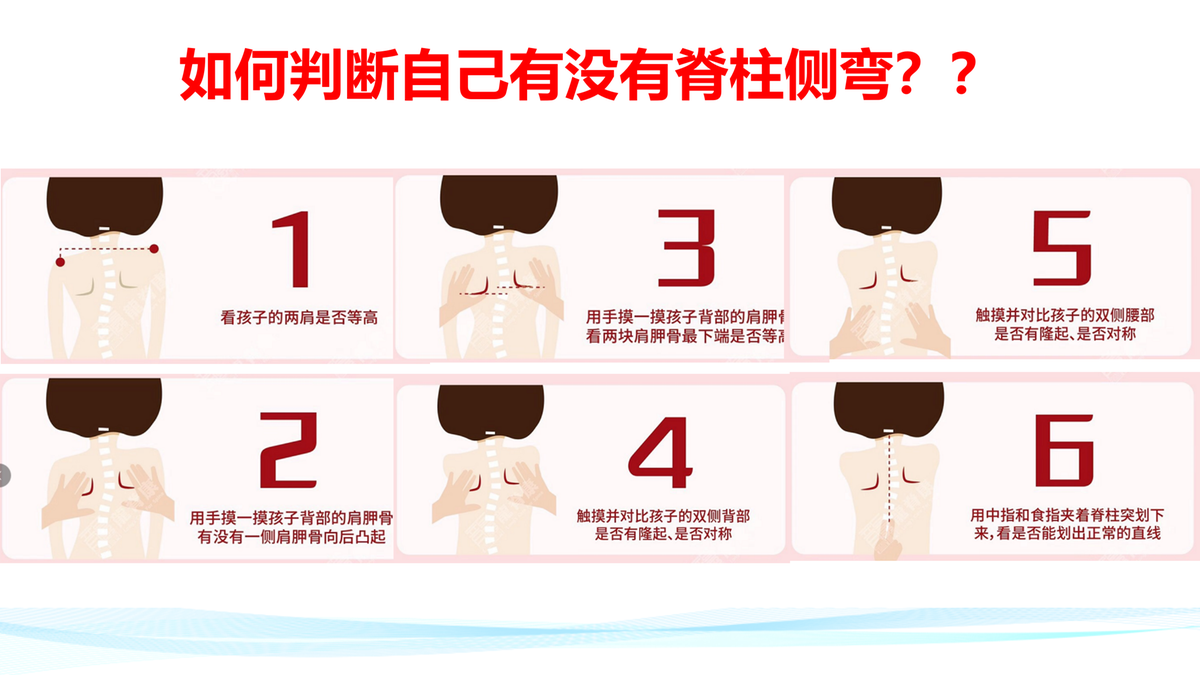 7、定期筛查:家长可在家通过简易“前屈试验”初步观察孩子背部是否对称隆起(剃刀背),一旦发现疑虑或体态异常(如衣服总歪斜),应及时到正规医疗机构评估,遵医嘱进行科学的矫正治疗。
