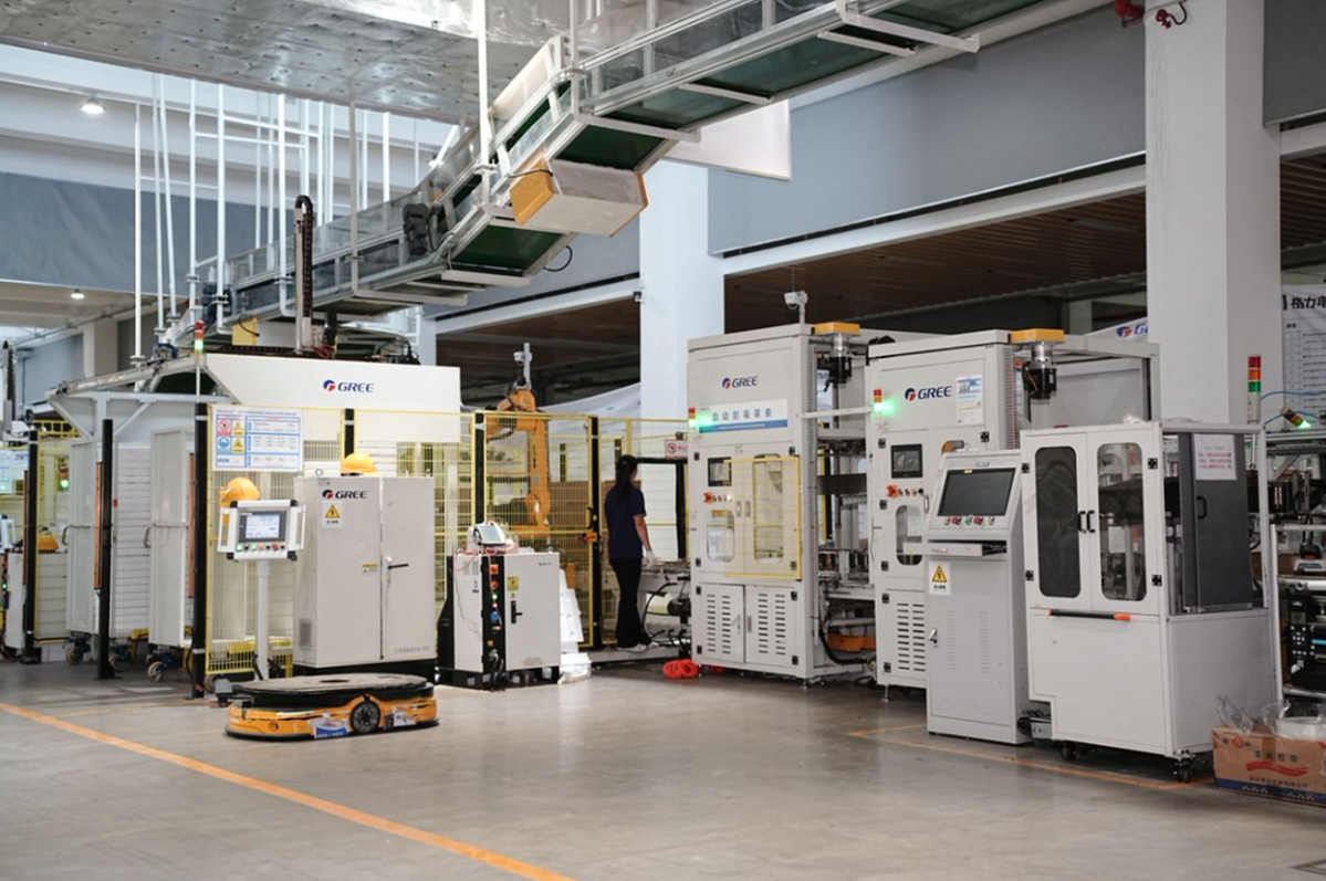 正值“双11”购物节火热之际,位于珠海金湾的格力智能工厂也在全速运转,生产线上一片繁忙,机械臂精准装配,质检流程有条不紊,一件件空调产品在自动化生产线上快速流转,等待发往全国各地。