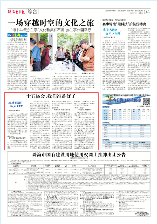 从横琴国际网球中心匠心独具的场地涂层,到公路自行车赛高效便捷的“无感通关”,珠海正以扎实的筹备与创新的魄力,向全国展示其承办顶级赛事的能力与拥抱湾区融合的胸怀。全运时刻,珠海已经准备就绪。